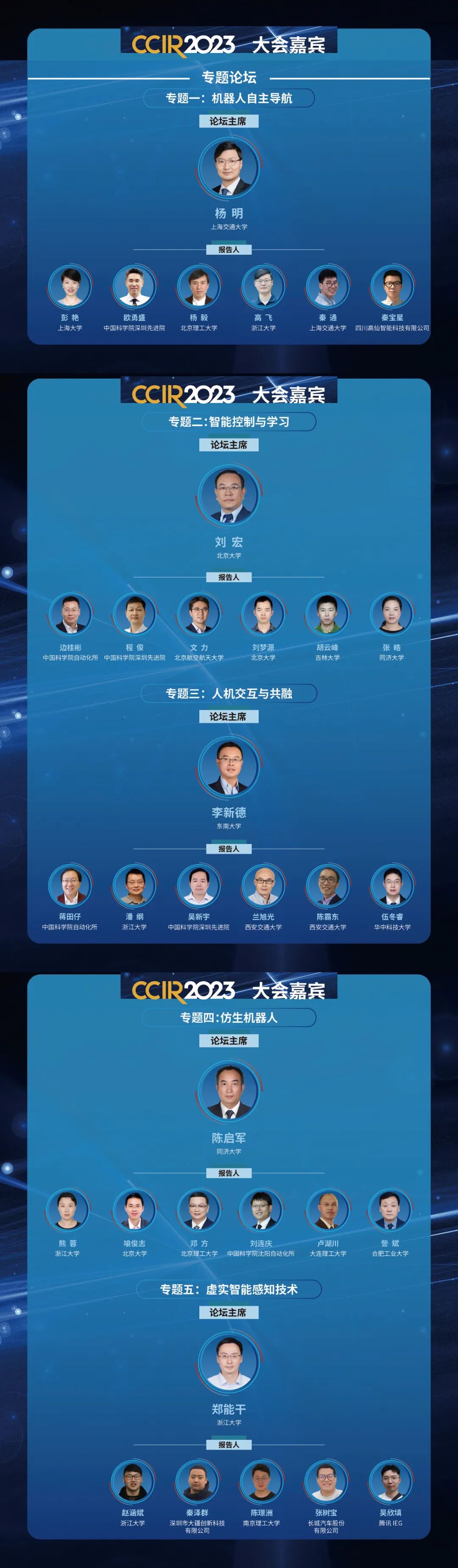 大会设有“机器人自主导航”、“智能控制与学习”、“人机交互与共融”、“仿生机器人”、“虚实智能感知技术”、"智能感知与融合”、“多机器人与协同”、"医疗与康复机器人”、"手术机器人临床与产业化应用”、“工业机器人创新与发展”10个专题论坛,并邀请领域知名专家学者担任专题论坛主席,紧扣国家重大需求与时代发展脉搏,为智能机器人领域的专家学者提供一个展示创新成果、展望未来发展的高端学术对话平台,有效汇聚各方智慧和力量,为提高智能机器人领域的科技创新水平、为实现国家重大战略目标做出积极贡献。