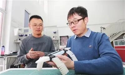 “四肢”用硅橡胶材料直接浇筑制作而成,由气动装置对其进行控制,不仅整个结构仿照鳄鱼来完成自主设计,还能水陆两栖,其软体材料可以根据环境中的障碍进行形变,实现在狭小、复杂场景下活动。近日,记者在南开大学人工智能学院实验室里见到该学院教授、博士生导师孙宁时,他正和团队成员讨论他们在研制的这款两栖仿生软体机器人的优化方案。“这种仿生鳄鱼是我们目前在气动软体机器人方向最前沿的研究。相比刚性机器人、增材制造(3D打印)来说,用硅橡胶材料直接浇筑制作具有很高的难度。现在我们已经基本解决了其中最难的建模和运动控制问题,正在进一步改进它的动力学结构。”孙宁向记者介绍。