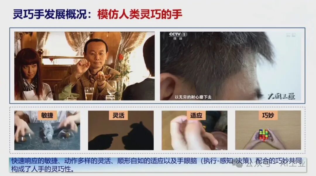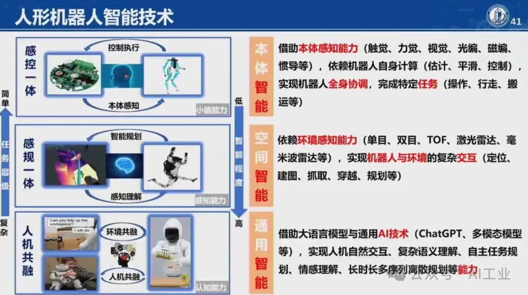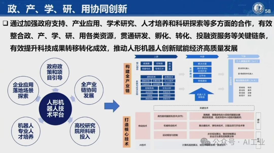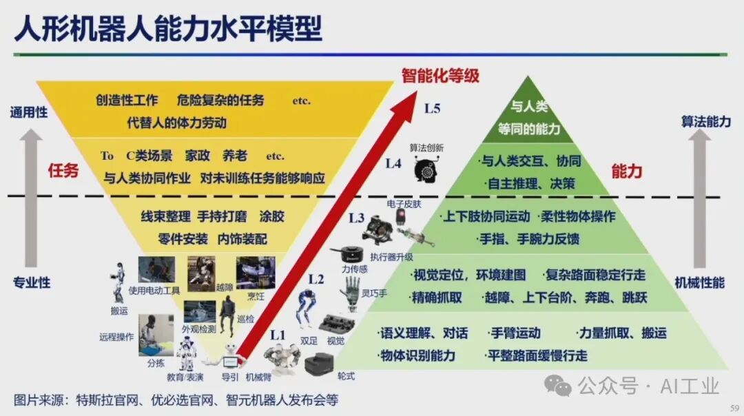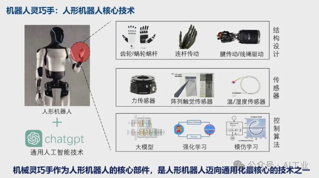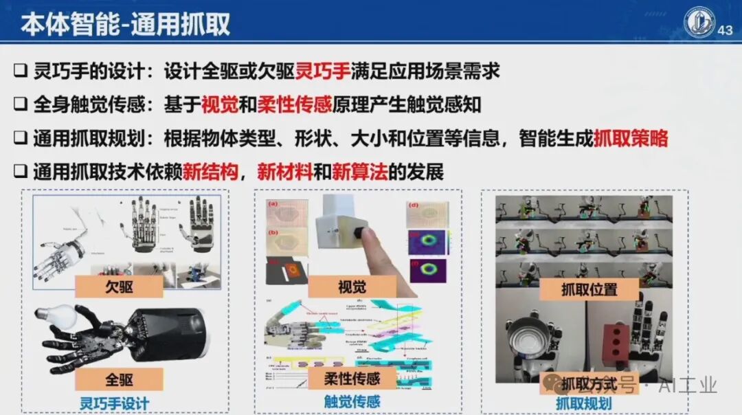 4月9日,首届中国人形机器人产业大会暨具身智能峰会在海淀区开幕。中国科学院院士、华中科技大学学术委员会主任丁汉院士在会上发表了题为《机器人未来技术研判》的演讲。丁汉院士深入剖析了当前机器人技术的发展现状,并对未来趋势进行了科学预测。丁汉院士表示,人形机器人具有通用性好和柔性高等优点,适合低精度、低负载、高柔性、高协作、复杂多任务的场景,主要在军事应用、航空航天、工业制造和家庭服务等领域。目前人形机器人离场景应用尚有距离,但基于大量科研攻关和技术研发,未来将有理想的产业机遇。人形机器人智能技术程度由低到高分为本体智能、空间智能和通用智能。硬件系统包括机械本体、传感系统、伺服系统和控制系统等,整体产业链仍不成熟。人形机器人可持续高质量发展硬件水平至关重要。本体智能中核心技术-通用抓取,灵巧手结构设计、触觉传感抓取规划依赖于新结构、新材料、新算法的发展。模仿人达到敏捷快速、响应灵活、动作多样、适应顺形自如仍是长期而艰巨的任务。因此,灵巧手是人形机器人迈向通用化最核心的技术之一。在环境智能复杂空间通行,规划实时性和可靠性差,算法的瓶颈急需加强数学和物理等基础理论研究。人形机器人需要政府引导、企业探索、全产业链协同、高校研发投入、专业人才加大培养,形成政产学研用,贯穿研发、孵化、转化、投融资服务等关键链条,有效提升科技成果转移转化成效,推动人形机器人创新赋能经济高质量发展。