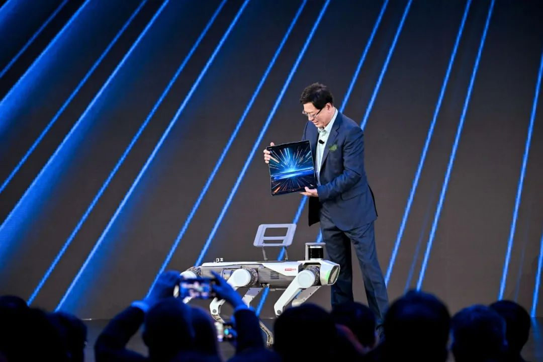 2024年4月,联想创新科技大会上,联想晨星足式机器人载着AI PC发布。