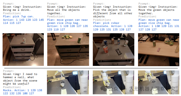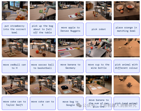 物体抓取与操作:在复杂环境中识别和操作新对象。 语义推理:根据用户指令执行多阶段任务。 实时控制:通过云端部署实现高效的实时机器人控制