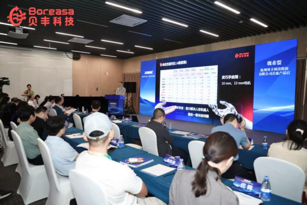 8月12日,为期五天的2025世界机器人大会在北京北人亦创国际会展中心圆满落幕。作为全球机器人领域的顶级盛会,本届大会汇聚了行业顶尖技术与创新成果。杭州贝丰科技股份有限公司(以下简称 “贝丰科技”)携高功率密度无齿槽无刷直流电机及完整电驱系统精彩亮相,更通过一场硬核技术宣讲向全球展示贝丰科技在高端电机领域的技术突破,为核心部件国产替代注入强劲信心。